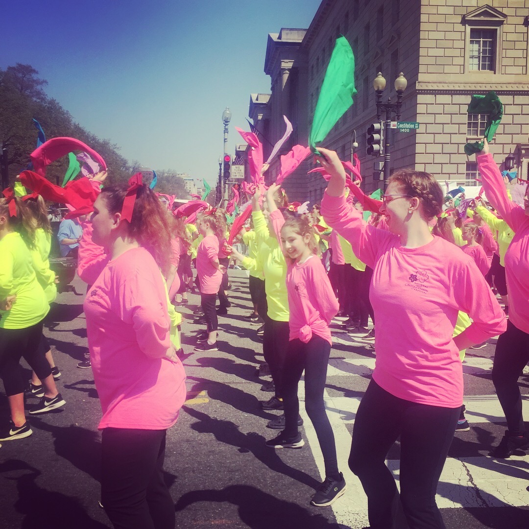 For many years, RCDA dancers joined over 400 other dancers from around the U.S. on the National Cherry Blossom All-Star Dance Team. The enormous ensemble learned a unique and upbeat dance every year, which was performed along Constitution Avenue as part of the Annual Cherry Blossom Festival Parade.